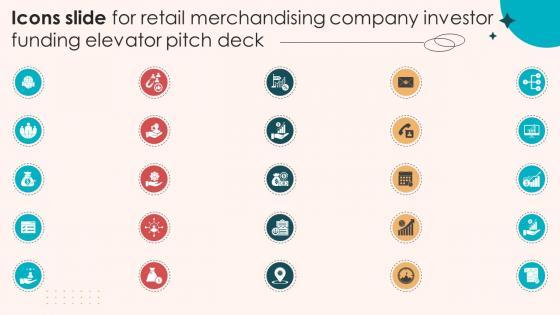 Whether you have daily or monthly meetings, a brilliant presentation is necessary. Icons Slide For Retail Merchandising Company Investor Funding Elevator Pitch Deck Ppt Presentation can be your best option for delivering a presentation. Represent everything in detail using Icons Slide For Retail Merchandising Company Investor Funding Elevator Pitch Deck Ppt Presentation and make yourself stand out in meetings. The template is versatile and follows a structure that will cater to your requirements. All the templates prepared by Slidegeeks are easy to download and edit. Our research experts have taken care of the corporate themes as well. So, give it a try and see the results. Our Icons Slide For Retail Merchandising Company Investor Funding Elevator Pitch Deck Ppt Presentation are topically designed to provide an attractive backdrop to any subject. Use them to look like a presentation pro.