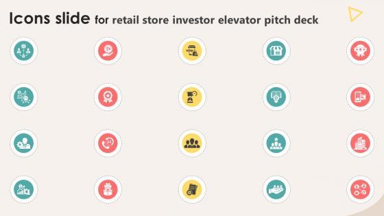 Whether you have daily or monthly meetings, a brilliant presentation is necessary. Icons Slide For Retail Store Investor Elevator Pitch Deck can be your best option for delivering a presentation. Represent everything in detail using Icons Slide For Retail Store Investor Elevator Pitch Deck and make yourself stand out in meetings. The template is versatile and follows a structure that will cater to your requirements. All the templates prepared by Slidegeeks are easy to download and edit. Our research experts have taken care of the corporate themes as well. So, give it a try and see the results. Our Icons Slide For Retail Store Investor Elevator Pitch Deck are topically designed to provide an attractive backdrop to any subject. Use them to look like a presentation pro.