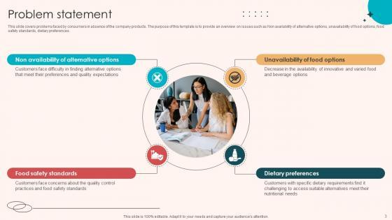 This slide covers problems faced by consumers in absence of the company products. The purpose of this template is to provide an overview on issues such as Non availability of alternative options, unavailability of food options, food safety standards, dietary preferences. Formulating a presentation can take up a lot of effort and time, so the content and message should always be the primary focus. The visuals of the PowerPoint can enhance the presenters message, so our Problem Statement Retail Merchandising Company Investor Funding Elevator Pitch Deck Ppt Template was created to help save time. Instead of worrying about the design, the presenter can concentrate on the message while our designers work on creating the ideal templates for whatever situation is needed. Slidegeeks has experts for everything from amazing designs to valuable content, we have put everything into Problem Statement Retail Merchandising Company Investor Funding Elevator Pitch Deck Ppt Template. This slide covers problems faced by consumers in absence of the company products. The purpose of this template is to provide an overview on issues such as Non availability of alternative options, unavailability of food options, food safety standards, dietary preferences.