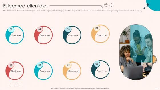 This slide covers customers whom the company serves its wide range of products. The purpose of this template is to provide an overview on top notch customers generating maximum revenue for the company. Get a simple yet stunning designed Esteemed Clientele Retail Merchandising Company Investor Funding Elevator Pitch Deck Ppt Slides. It is the best one to establish the tone in your meetings. It is an excellent way to make your presentations highly effective. So, download this PPT today from Slidegeeks and see the positive impacts. Our easy-to-edit Esteemed Clientele Retail Merchandising Company Investor Funding Elevator Pitch Deck Ppt Slides can be your go-to option for all upcoming conferences and meetings. So, what are you waiting for Grab this template today. This slide covers customers whom the company serves its wide range of products. The purpose of this template is to provide an overview on top notch customers generating maximum revenue for the company.