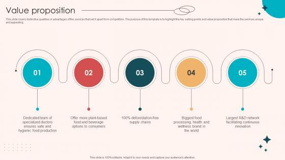 This slide covers distinctive qualities or advantages of the services that set it apart from competitors. The purpose of this template is to highlight the key selling points and value proposition that make the services unique and appealing. Explore a selection of the finest Value Proposition Retail Merchandising Company Investor Funding Elevator Pitch Deck Ppt Example here. With a plethora of professionally designed and pre-made slide templates, you can quickly and easily find the right one for your upcoming presentation. You can use our Value Proposition Retail Merchandising Company Investor Funding Elevator Pitch Deck Ppt Example to effectively convey your message to a wider audience. Slidegeeks has done a lot of research before preparing these presentation templates. The content can be personalized and the slides are highly editable. Grab templates today from Slidegeeks. This slide covers distinctive qualities or advantages of the services that set it apart from competitors. The purpose of this template is to highlight the key selling points and value proposition that make the services unique and appealing.