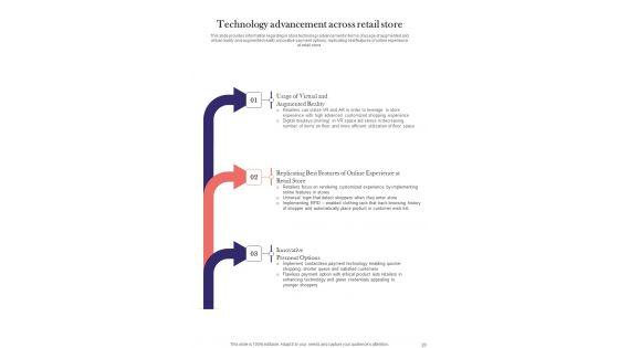 This slide provides information regarding in store technology advancement in terms of usage of augmented and virtual reality and augmented reality, innovative payment options, replicating best features of online experience at retail store. This is a Retail Outlet Experience Optimization Playbook Technology Advancement Across Retail Store Cont Mockup PDF template with various stages. Focus and dispense information on three stages using this creative set, that comes with editable features. It contains large content boxes to add your information on topics like Innovative Payment Options, Retail Store, Implementing. You can also showcase facts, figures, and other relevant content using this PPT layout. Grab it now.