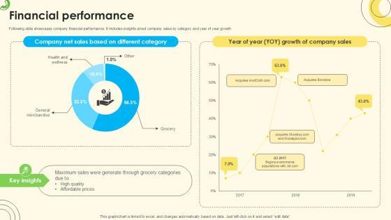 Following slide showcases company financial performance. It includes insights about company sales by category and year of year growth Formulating a presentation can take up a lot of effort and time, so the content and message should always be the primary focus. The visuals of the PowerPoint can enhance the presenters message, so our Financial Performance Sales Pitch Deck For Online Retail Ppt Slide was created to help save time. Instead of worrying about the design, the presenter can concentrate on the message while our designers work on creating the ideal templates for whatever situation is needed. Slidegeeks has experts for everything from amazing designs to valuable content, we have put everything into Financial Performance Sales Pitch Deck For Online Retail Ppt Slide Following slide showcases company financial performance. It includes insights about company sales by category and year of year growth