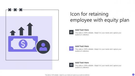 Pitch your topic with ease and precision using this Icon For Retaining Employee With Equity Plan Graphics Pdf. This layout presents information on Icon Retaining, Employee, Equity Plan. It is also available for immediate download and adjustment. So, changes can be made in the color, design, graphics or any other component to create a unique layout. Our Icon For Retaining Employee With Equity Plan Graphics Pdf are topically designed to provide an attractive backdrop to any subject. Use them to look like a presentation pro.
