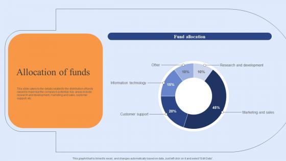 This slide caters to the details related to the distribution of funds raised to maximize the companys potential. Key areas include research and development, marketing and sales, customer support, etc. are you searching for a Allocation Of Funds Funding Elevator Pitch Deck For Customer Retention Software Elements Pdf that is uncluttered, straightforward, and original Its easy to edit, and you can change the colors to suit your personal or business branding. For a presentation that expresses how much This slide caters to the details related to the distribution of funds raised to maximize the companys potential. Key areas include research and development, marketing and sales, customer support, etc.