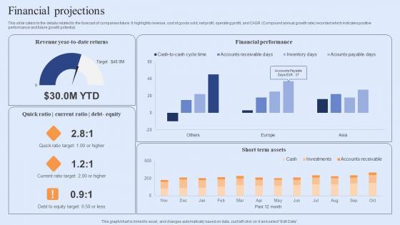 This slide caters to the details related to the forecast of companies future. It highlights revenue, cost of goods sold, net profit, operating profit, and CAGR Compound annual growth rate recorded which indicates positive performance and future growth potential. Here you can discover an assortment of the finest PowerPoint and Google Slides templates. With these templates, you can create presentations for a variety of purposes while simultaneously providing your audience with an eye catching visual experience. Download Financial Projections Funding Elevator Pitch Deck For Customer Retention Software Graphics Pdf to deliver an impeccable presentation. These templates will make your job of preparing presentations much quicker, yet still, maintain a high level of quality. Slidegeeks has experienced researchers who prepare these templates and write high quality content for you. Later on, you can personalize the content by editing the Financial Projections Funding Elevator Pitch Deck For Customer Retention Software Graphics Pdf. This slide caters to the details related to the forecast of companies future. It highlights revenue, cost of goods sold, net profit, operating profit, and CAGR Compound annual growth rate recorded which indicates positive performance and future growth potential.