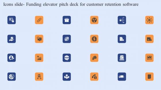 Introducing our well designed Icons Slide Funding Elevator Pitch Deck For Customer Retention Software Template Pdf set of slides. The slide displays editable icons to enhance your visual presentation. The icons can be edited easily. So customize according to your business to achieve a creative edge. Download and share it with your audience. Our Icons Slide Funding Elevator Pitch Deck For Customer Retention Software Template Pdf are topically designed to provide an attractive backdrop to any subject. Use them to look like a presentation pro.