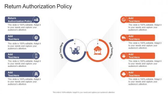 Introducing our well designed Return Authorization Policy In Powerpoint And Google Slides Cpb. This PowerPoint design presents information on topics like Return Authorization Policy. As it is predesigned it helps boost your confidence level. It also makes you a better presenter because of its high quality content and graphics. This PPT layout can be downloaded and used in different formats like PDF, PNG, and JPG. Not only this, it is available in both Standard Screen and Widescreen aspect ratios for your convenience. Therefore, click on the download button now to persuade and impress your audience. Our Return Authorization Policy In Powerpoint And Google Slides Cpb are topically designed to provide an attractive backdrop to any subject. Use them to look like a presentation pro.