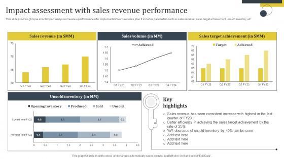 This slide provides glimpse about impact analysis of revenue performance after implementation of new sales plan. It includes parameters such as sales revenue, sales target achievement, unsold inventory, etc. This modern and well-arranged Enhance Customer Retention Impact Assessment With Sales Revenue Performance Rules Pdf provides lots of creative possibilities. It is very simple to customize and edit with the Powerpoint Software. Just drag and drop your pictures into the shapes. All facets of this template can be edited with Powerpoint no extra software is necessary. Add your own material, put your images in the places assigned for them, adjust the colors, and then you can show your slides to the world, with an animated slide included. This slide provides glimpse about impact analysis of revenue performance after implementation of new sales plan. It includes parameters such as sales revenue, sales target achievement, unsold inventory, etc.