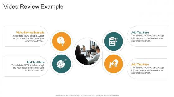 Introducing our well designed Video Review Example In Powerpoint And Google Slides Cpb. This PowerPoint design presents information on topics like Video Review Example. As it is predesigned it helps boost your confidence level. It also makes you a better presenter because of its high quality content and graphics. This PPT layout can be downloaded and used in different formats like PDF, PNG, and JPG. Not only this, it is available in both Standard Screen and Widescreen aspect ratios for your convenience. Therefore, click on the download button now to persuade and impress your audience. Our Video Review Example In Powerpoint And Google Slides Cpb are topically designed to provide an attractive backdrop to any subject. Use them to look like a presentation pro.