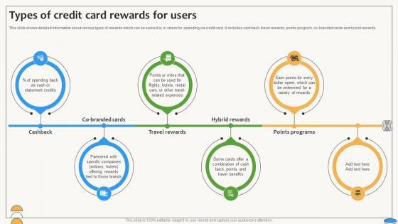 This slide shows detailed information about various types of rewards which can be earned by in return for spending via credit card. It includes cashback, travel rewards, points program, co-branded cards and hybrid rewards. Formulating a presentation can take up a lot of effort and time, so the content and message should always be the primary focus. The visuals of the PowerPoint can enhance the presenters message, so our Types Of Credit Card Rewards For Users Swipe Smartly A Practical Guide Fin SS V was created to help save time. Instead of worrying about the design, the presenter can concentrate on the message while our designers work on creating the ideal templates for whatever situation is needed. Slidegeeks has experts for everything from amazing designs to valuable content, we have put everything into Types Of Credit Card Rewards For Users Swipe Smartly A Practical Guide Fin SS V This slide shows detailed information about various types of rewards which can be earned by in return for spending via credit card. It includes cashback, travel rewards, points program, co-branded cards and hybrid rewards.