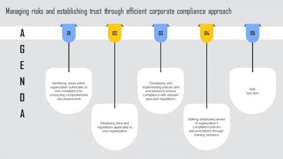 If your project calls for a presentation, then Slidegeeks is your go to partner because we have professionally designed, easy to edit templates that are perfect for any presentation. After downloading, you can easily edit Agenda Managing Risks And Establishing Trust Through Efficient Corporate Compliance Approach Grid Pdf and make the changes accordingly. You can rearrange slides or fill them with different images. Check out all the handy templates Our Agenda Managing Risks And Establishing Trust Through Efficient Corporate Compliance Approach Grid Pdf are topically designed to provide an attractive backdrop to any subject. Use them to look like a presentation pro.