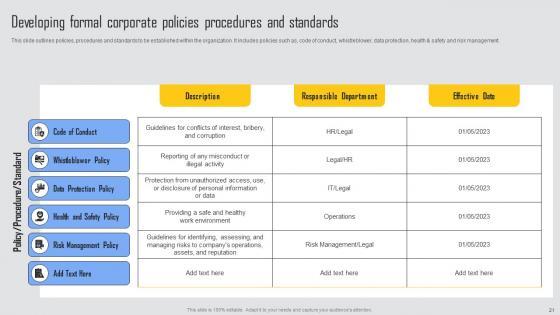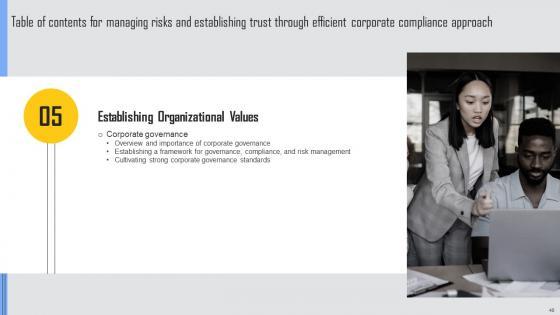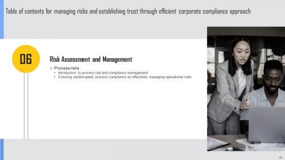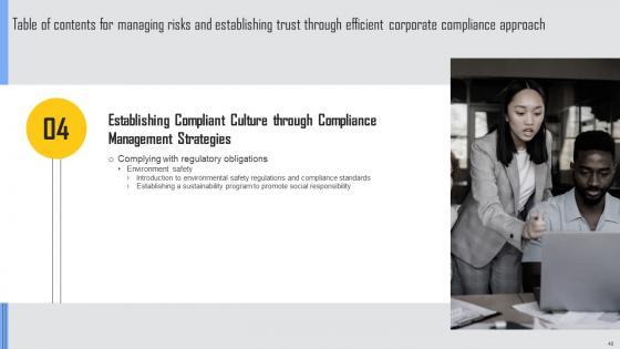 With this completely editable presentation template,our Managing Risks And Establishing Trust Through Efficient Corporate Compliance Approach Complete Deck offers a new proposition for business managers to consider. When expressed as a written form in the shape of a PPT presentation business concepts assume a new dimension. This presentation of ninty four slides on Presentation will allow you to showcase your expert to roomful of people in business domains for purposeful exchange of ideas. We list all facets of business that require a bit of effort to grasp. The aim is to ensure the presenter and the audience can arrive at an agreement for a business deal. If this is done,our purpose is solved. Download now. Our Managing Risks And Establishing Trust Through Efficient Corporate Compliance Approach Complete Deck are topically designed to provide an attractive backdrop to any subject. Use them to look like a presentation pro.