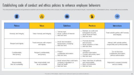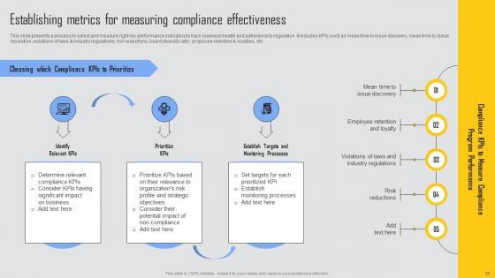 This slide outlines strategies for aligning compliance with corporate culture to ensure its successful integration. It includes steps such as , define company values, communicate expectations, foster a speak up culture and incorporate compliance into performance evaluations. If you are looking for a format to display your unique thoughts, then the professionally designed Aligning Business Compliance Managing Risks And Establishing Trust Through Efficient Structure Pdf is the one for you. You can use it as a Google Slides template or a PowerPoint template. Incorporate impressive visuals, symbols, images, and other charts. Modify or reorganize the text boxes as you desire. Experiment with shade schemes and font pairings. Alter, share or cooperate with other people on your work. Download Aligning Business Compliance Managing Risks And Establishing Trust Through Efficient Structure Pdf and find out how to give a successful presentation. Present a perfect display to your team and make your presentation unforgettable. This slide outlines strategies for aligning compliance with corporate culture to ensure its successful integration. It includes steps such as , define company values, communicate expectations, foster a speak up culture and incorporate compliance into performance evaluations.