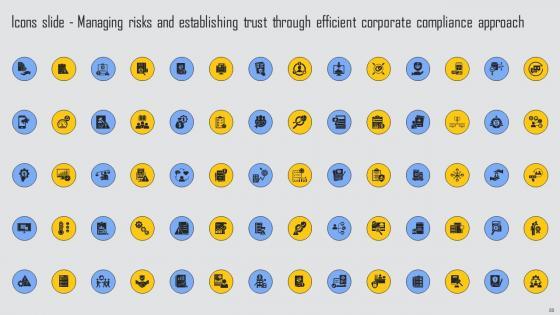 Introducing our well designed Icons Slide Managing Risks And Establishing Trust Through Efficient Corporate Compliance Rules Pdf set of slides. The slide displays editable icons to enhance your visual presentation. The icons can be edited easily. So customize according to your business to achieve a creative edge. Download and share it with your audience. Our Icons Slide Managing Risks And Establishing Trust Through Efficient Corporate Compliance Rules Pdf are topically designed to provide an attractive backdrop to any subject. Use them to look like a presentation pro.
