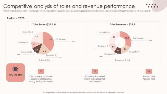 The following slide showcases the competitive assessment of organizations sales and revenues to evaluate the gap and compare metrics. It includes pie chart representing performance along with key insights etc. Slidegeeks is one of the best resources for PowerPoint templates. You can download easily and regulate Sales Risk Assessment For Profit Maximization Competitive Analysis Of Sales And Revenue Performance Introduction PDF for your personal presentations from our wonderful collection. A few clicks is all it takes to discover and get the most relevant and appropriate templates. Use our Templates to add a unique zing and appeal to your presentation and meetings. All the slides are easy to edit and you can use them even for advertisement purposes.