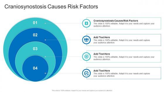 Presenting our innovatively designed set of slides titled Craniosynostosis Causes Risk Factors In Powerpoint And Google Slides Cpb. This completely editable PowerPoint graphic exhibits Craniosynostosis Causes Risk Factors that will help you convey the message impactfully. It can be accessed with Google Slides and is available in both standard screen and widescreen aspect ratios. Apart from this, you can download this well structured PowerPoint template design in different formats like PDF, JPG, and PNG. So, click the download button now to gain full access to this PPT design. Our Craniosynostosis Causes Risk Factors In Powerpoint And Google Slides Cpb are topically designed to provide an attractive backdrop to any subject. Use them to look like a presentation pro.