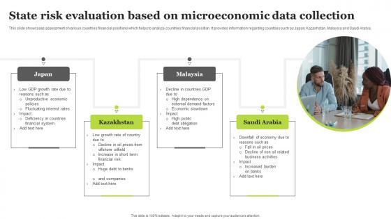 This slide showcases assessment of various countries financial positions which helps to analyze countries financial position. It provides information regarding countries such as Japan, Kazakhstan, Malaysia and Saudi Arabia. Pitch your topic with ease and precision using this State Risk Evaluation Based On Microeconomic Data Collection Brochure Pdf. This layout presents information on Financial Risk, Downfall Of Economy. It is also available for immediate download and adjustment. So, changes can be made in the color, design, graphics or any other component to create a unique layout. This slide showcases assessment of various countries financial positions which helps to analyze countries financial position. It provides information regarding countries such as Japan, Kazakhstan, Malaysia and Saudi Arabia.