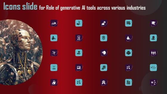 Presenting this PowerPoint presentation, titled Generative AI Use Cases By Industry Role Of Generative AI Tools Across Icons Pdf, with topics curated by our researchers after extensive research. This editable presentation is available for immediate download and provides attractive features when used. Download now and captivate your audience. Presenting this Generative AI Use Cases By Industry Role Of Generative AI Tools Across Icons Pdf. Our researchers have carefully researched and created these slides with all aspects taken into consideration. This is a completely customizable Generative AI Use Cases By Industry Role Of Generative AI Tools Across Icons Pdf that is available for immediate downloading. Download now and make an impact on your audience. Highlight the attractive features available with our PPTs. Our Generative AI Use Cases By Industry Role Of Generative AI Tools Across Icons Pdf are topically designed to provide an attractive backdrop to any subject. Use them to look like a presentation pro.