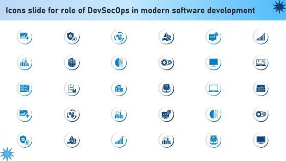 Introducing our well designed Icons Slide For Role Of Devsecops In Modern Software Development Ppt Template set of slides. The slide displays editable icons to enhance your visual presentation. The icons can be edited easily. So customize according to your business to achieve a creative edge. Download and share it with your audience. Our Icons Slide For Role Of Devsecops In Modern Software Development Ppt Template are topically designed to provide an attractive backdrop to any subject. Use them to look like a presentation pro.