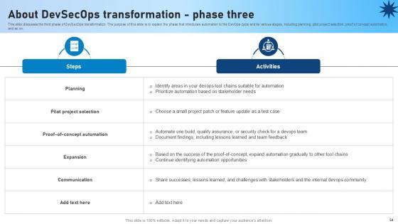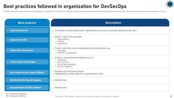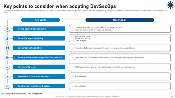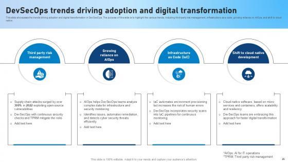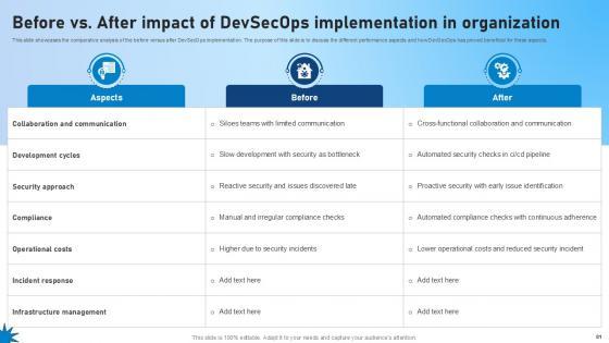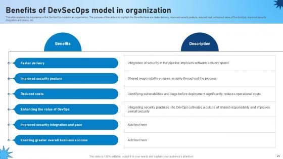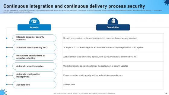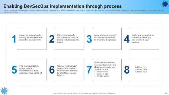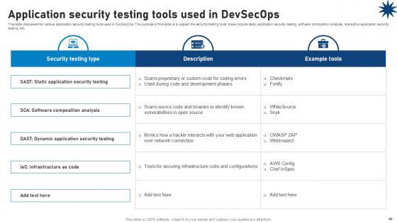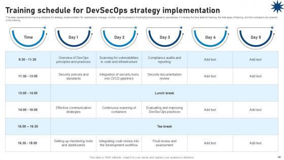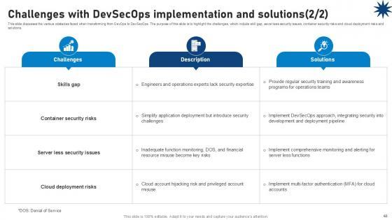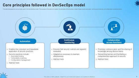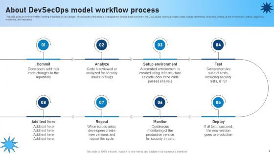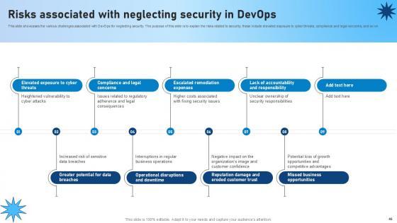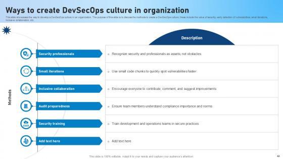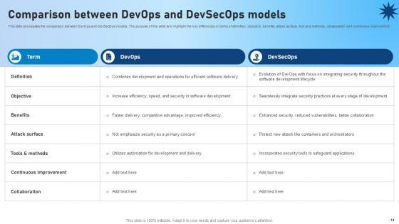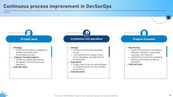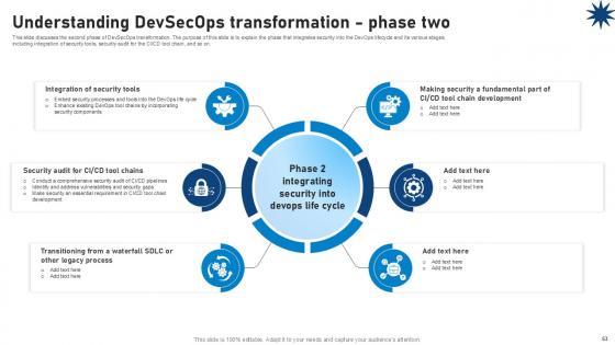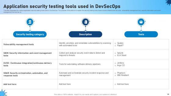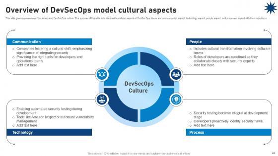 With well-researched insights and carefully-constructed design, this Role Of DevSecOps In Modern Software Development Ppt Example is all that you need for your next business meeting with clients and win them over. Add your data to graphs, charts, and tables that are already ready to display it with stunning visuals and help your audience recall your work. With this PPT Complete Deck, you will be able to display your knowledge of the subject as well as your skills as a communicator. Share your ideas and make an impact on the audience with this PowerPoint Layout and ensure that you are known as a presentation professional. Download this PPT Template Bundle to create the most interesting presentation anyone has ever seen. Our Role Of DevSecOps In Modern Software Development Ppt Example are topically designed to provide an attractive backdrop to any subject. Use them to look like a presentation pro.