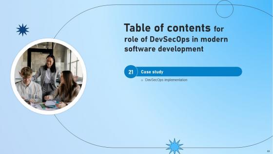 Are you searching for a For Role Of Devsecops In Modern Software Development Table Of Contents Ppt Powerpoint that is uncluttered, straightforward, and original Its easy to edit, and you can change the colors to suit your personal or business branding. For a presentation that expresses how much effort you have put in, this template is ideal With all of its features, including tables, diagrams, statistics, and lists, its perfect for a business plan presentation. Make your ideas more appealing with these professional slides. Download For Role Of Devsecops In Modern Software Development Table Of Contents Ppt Powerpoint from Slidegeeks today. Our For Role Of Devsecops In Modern Software Development Table Of Contents Ppt Powerpoint are topically designed to provide an attractive backdrop to any subject. Use them to look like a presentation pro.