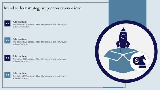 Pitch your topic with ease and precision using this Brand Rollout Strategy Impact On Revenue Icon Ppt Slides Show Pdf. This layout presents information on Brand Rollout, Strategy Impact, Revenue Icon. It is also available for immediate download and adjustment. So, changes can be made in the color, design, graphics or any other component to create a unique layout. Our Brand Rollout Strategy Impact On Revenue Icon Ppt Slides Show Pdf are topically designed to provide an attractive backdrop to any subject. Use them to look like a presentation pro.