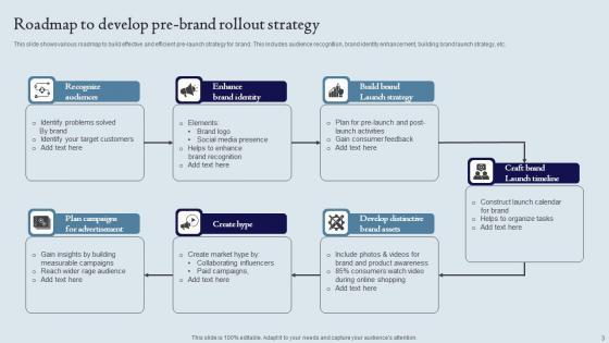 This slide shows various roadmap to build effective and efficient pre-launch strategy for brand. This includes audience recognition, brand identity enhancement, building brand launch strategy, etc. Showcasing this set of slides titled Roadmap To Develop Pre Brand Rollout Strategy Ppt Visual Aids Backgrounds Pdf. The topics addressed in these templates are Audience Recognition, Brand Identity Enhancement, Building Brand Launch Strategy. All the content presented in this PPT design is completely editable. Download it and make adjustments in color, background, font etc. as per your unique business setting. This slide shows various roadmap to build effective and efficient pre-launch strategy for brand. This includes audience recognition, brand identity enhancement, building brand launch strategy, etc.