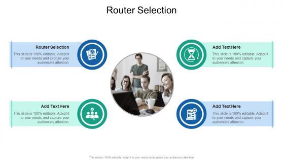 Introducing our well designed Router Selection In Powerpoint And Google Slides Cpb. This PowerPoint design presents information on topics like Router Selection. As it is predesigned it helps boost your confidence level. It also makes you a better presenter because of its high-quality content and graphics. This PPT layout can be downloaded and used in different formats like PDF, PNG, and JPG. Not only this, it is available in both Standard Screen and Widescreen aspect ratios for your convenience. Therefore, click on the download button now to persuade and impress your audience. Our Router Selection In Powerpoint And Google Slides Cpb are topically designed to provide an attractive backdrop to any subject. Use them to look like a presentation pro.
