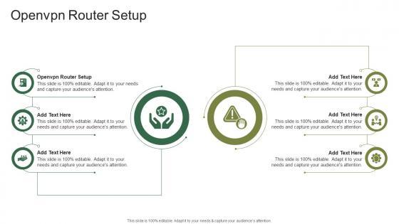Introducing our well-designed Openvpn Router Setup In Powerpoint And Google Slides Cpb. This PowerPoint design presents information on topics like Openvpn Router Setup. As it is predesigned it helps boost your confidence level. It also makes you a better presenter because of its high-quality content and graphics. This PPT layout can be downloaded and used in different formats like PDF, PNG, and JPG. Not only this, it is available in both Standard Screen and Widescreen aspect ratios for your convenience. Therefore, click on the download button now to persuade and impress your audience. Our Openvpn Router Setup In Powerpoint And Google Slides Cpb are topically designed to provide an attractive backdrop to any subject. Use them to look like a presentation pro.