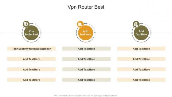 Introducing our well designed Vpn Router Best In Powerpoint And Google Slides Cpb. This PowerPoint design presents information on topics like Vpn Router Best. As it is predesigned it helps boost your confidence level. It also makes you a better presenter because of its high quality content and graphics. This PPT layout can be downloaded and used in different formats like PDF, PNG, and JPG. Not only this, it is available in both Standard Screen and Widescreen aspect ratios for your convenience. Therefore, click on the download button now to persuade and impress your audience. Our Vpn Router Best In Powerpoint And Google Slides Cpb are topically designed to provide an attractive backdrop to any subject. Use them to look like a presentation pro.