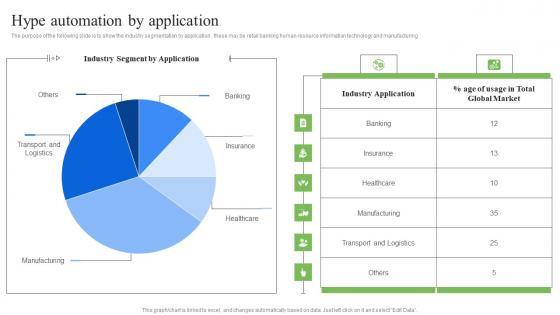 The purpose of the following slide is to show the industry segmentation by application, these may be retail banking human resource information technology and manufacturing. Slidegeeks is here to make your presentations a breeze with Hype Automation By Application RPA Influence On Industries Formats Pdf With our easy-to-use and customizable templates, you can focus on delivering your ideas rather than worrying about formatting. With a variety of designs to choose from, you are sure to find one that suits your needs. And with animations and unique photos, illustrations, and fonts, you can make your presentation pop. So whether you are giving a sales pitch or presenting to the board, make sure to check out Slidegeeks first. The purpose of the following slide is to show the industry segmentation by application, these may be retail banking human resource information technology and manufacturing.