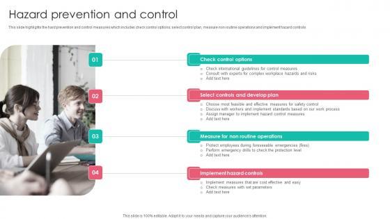 This slide highlights the hard prevention and control measures which includes check control options, select control plan, measure non routine operations and implement hazard controls. This Hazard Prevention Workplace Safety Protocol And Security Practices Ideas Pdf is perfect for any presentation, be it in front of clients or colleagues. It is a versatile and stylish solution for organizing your meetings. The Hazard Prevention Workplace Safety Protocol And Security Practices Ideas Pdf features a modern design for your presentation meetings. The adjustable and customizable slides provide unlimited possibilities for acing up your presentation. Slidegeeks has done all the homework before launching the product for you. So, do not wait, grab the presentation templates today This slide highlights the hard prevention and control measures which includes check control options, select control plan, measure non routine operations and implement hazard controls.