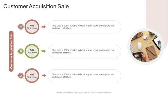 Introducing our well-designed Customer Acquisition Sale In Powerpoint And Google Slides Cpb. This PowerPoint design presents information on topics like Customer Acquisition Sale. As it is predesigned it helps boost your confidence level. It also makes you a better presenter because of its high-quality content and graphics. This PPT layout can be downloaded and used in different formats like PDF, PNG, and JPG. Not only this, it is available in both Standard Screen and Widescreen aspect ratios for your convenience. Therefore, click on the download button now to persuade and impress your audience. Our Customer Acquisition Sale In Powerpoint And Google Slides Cpb are topically designed to provide an attractive backdrop to any subject. Use them to look like a presentation pro.
