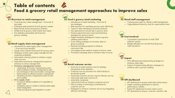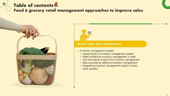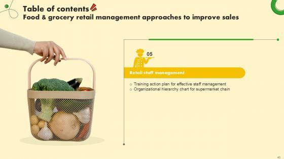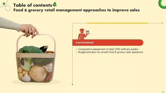 This sixty six-slide Food And Grocery Retail Management Approaches To Improve Sales Ppt Slide is your content ready tool to impress the stakeholders with your business planning and its manner of execution. Showcase your ideas and how you plan to make them real in detail with this PPT Template Bundle. The slides have the conceptual bandwidth to present the crucial aspects of your plan, such as funding, marketing, resource allocation, timeline, roadmap, and more. When you present your plans with this PPT Layout, the stakeholders are sure to come on board because you will be able to present a succinct, thought-out, winning project. Download this Complete Deck now to take control into your hands. The 100 percent customizable offer is just too good to be resisted. Our Food And Grocery Retail Management Approaches To Improve Sales Ppt Slide are topically designed to provide an attractive backdrop to any subject. Use them to look like a presentation pro.