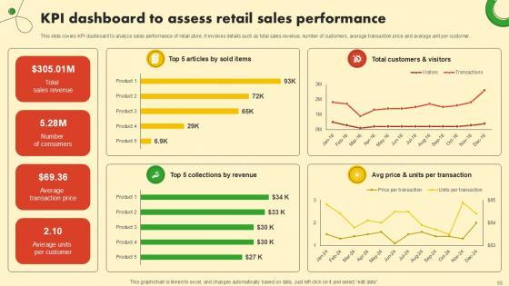 This slide covers KPI dashboard to analyze sales performance of retail store. It involves details such as total sales revenue, number of customers, average transaction price and average unit per customer. From laying roadmaps to briefing everything in detail, our templates are perfect for you. You can set the stage with your presentation slides. All you have to do is download these easy-to-edit and customizable templates. KPI Dashboard To Assess Retail Sales Food And Grocery Retail Ppt Sample will help you deliver an outstanding performance that everyone would remember and praise you for. Do download this presentation today. This slide covers KPI dashboard to analyze sales performance of retail store. It involves details such as total sales revenue, number of customers, average transaction price and average unit per customer.