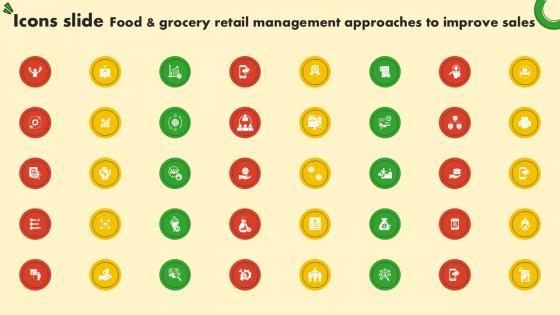 Help your business to create an attention-grabbing presentation using our Icons Slide Food And Grocery Retail Management Approaches To Improve Sales Ppt Sample set of slides. The slide contains innovative icons that can be flexibly edited. Choose this Icons Slide Food And Grocery Retail Management Approaches To Improve Sales Ppt Sample template to create a satisfactory experience for your customers. Go ahead and click the download button. Our Icons Slide Food And Grocery Retail Management Approaches To Improve Sales Ppt Sample are topically designed to provide an attractive backdrop to any subject. Use them to look like a presentation pro.