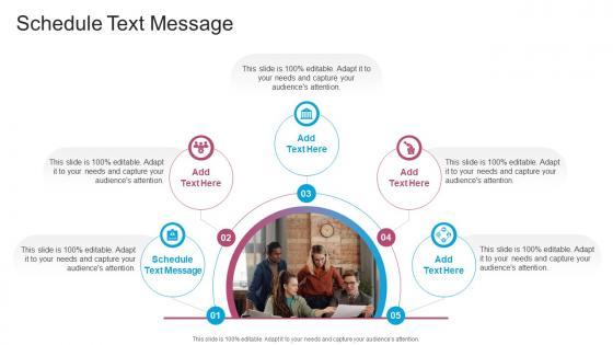 Introducing our well designed Schedule Text Message In Powerpoint And Google Slides Cpb. This PowerPoint design presents information on topics like Schedule Text Message. As it is predesigned it helps boost your confidence level. It also makes you a better presenter because of its high quality content and graphics. This PPT layout can be downloaded and used in different formats like PDF, PNG, and JPG. Not only this, it is available in both Standard Screen and Widescreen aspect ratios for your convenience. Therefore, click on the download button now to persuade and impress your audience. Our Schedule Text Message In Powerpoint And Google Slides Cpb are topically designed to provide an attractive backdrop to any subject. Use them to look like a presentation pro.