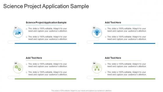 Presenting our innovatively designed set of slides titled Science Project Application Sample In Powerpoint And Google Slides Cpb. This completely editable PowerPoint graphic exhibits Science Project Application Sample that will help you convey the message impactfully. It can be accessed with Google Slides and is available in both standard screen and widescreen aspect ratios. Apart from this, you can download this well structured PowerPoint template design in different formats like PDF, JPG, and PNG. So, click the download button now to gain full access to this PPT design. Our Science Project Application Sample In Powerpoint And Google Slides Cpb are topically designed to provide an attractive backdrop to any subject. Use them to look like a presentation pro.
