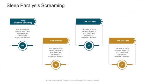 Presenting our innovatively designed set of slides titled Sleep Paralysis Screaming In Powerpoint And Google Slides Cpb. This completely editable PowerPoint graphic exhibits Sleep Paralysis Screaming that will help you convey the message impactfully. It can be accessed with Google Slides and is available in both standard screen and widescreen aspect ratios. Apart from this, you can download this well structured PowerPoint template design in different formats like PDF, JPG, and PNG. So, click the download button now to gain full access to this PPT design. Our Sleep Paralysis Screaming In Powerpoint And Google Slides Cpb are topically designed to provide an attractive backdrop to any subject. Use them to look like a presentation pro.