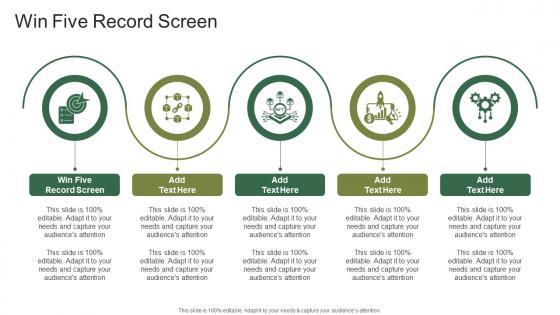 Introducing our well designed Win Five Record Screen In Powerpoint And Google Slides Cpb. This PowerPoint design presents information on topics like Win Five Record Screen. As it is predesigned it helps boost your confidence level. It also makes you a better presenter because of its high quality content and graphics. This PPT layout can be downloaded and used in different formats like PDF, PNG, and JPG. Not only this, it is available in both Standard Screen and Widescreen aspect ratios for your convenience. Therefore, click on the download button now to persuade and impress your audience. Our Win Five Record Screen In Powerpoint And Google Slides Cpb are topically designed to provide an attractive backdrop to any subject. Use them to look like a presentation pro.