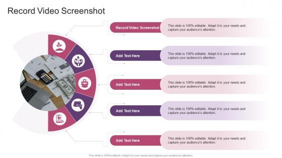 Introducing our well designed Record Video Screenshot In Powerpoint And Google Slides Cpb. This PowerPoint design presents information on topics like Record Video Screenshot. As it is predesigned it helps boost your confidence level. It also makes you a better presenter because of its high quality content and graphics. This PPT layout can be downloaded and used in different formats like PDF, PNG, and JPG. Not only this, it is available in both Standard Screen and Widescreen aspect ratios for your convenience. Therefore, click on the download button now to persuade and impress your audience. Our Record Video Screenshot In Powerpoint And Google Slides Cpb are topically designed to provide an attractive backdrop to any subject. Use them to look like a presentation pro.