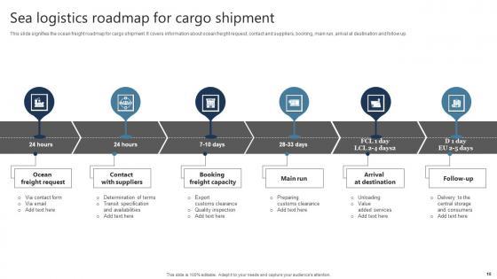 Share a great deal of information on the topic by deploying this Sea Logistics Ppt Powerpoint Presentation Complete Deck With Slides Support your ideas and thought process with this prefabricated set. It includes a set of sixteen slides, all fully modifiable and editable. Each slide can be restructured and induced with the information and content of your choice. You can add or remove large content boxes as well, to make this PPT slideshow more personalized. Its high-quality graphics and visuals help in presenting a well-coordinated pitch. This PPT template is also a resourceful tool to take visual cues from and implement the best ideas to help your business grow and expand. The main attraction of this well-formulated deck is that everything is editable, giving you the freedom to adjust it to your liking and choice. Changes can be made in the background and theme as well to deliver an outstanding pitch. Therefore, click on the download button now to gain full access to this multifunctional set. Our Sea Logistics Ppt Powerpoint Presentation Complete Deck With Slides are topically designed to provide an attractive backdrop to any subject. Use them to look like a presentation pro.
