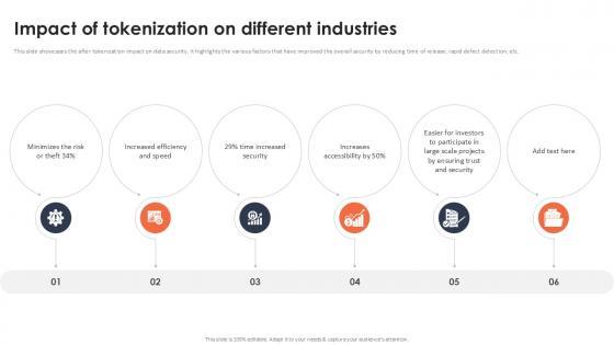 This slide showcases the after tokenization impact on data security. It highlights the various factors that have improved the overall security by reducing time of release, rapid defect detection, etc. Welcome to our selection of the Impact Of Tokenization On Different Industries Securing Your Data Ppt Example These are designed to help you showcase your creativity and bring your sphere to life. Planning and Innovation are essential for any business that is just starting out. This collection contains the designs that you need for your everyday presentations. All of our PowerPoints are 100Percent editable, so you can customize them to suit your needs. This multi-purpose template can be used in various situations. Grab these presentation templates today. This slide showcases the after tokenization impact on data security. It highlights the various factors that have improved the overall security by reducing time of release, rapid defect detection, etc.