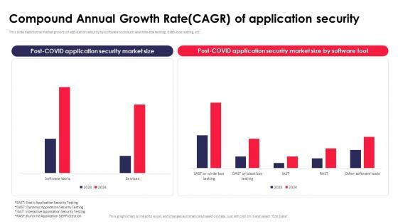 This slide depicts the market growth of application security by software tools such as white-box testing, black-box testing, etc. Crafting an eye-catching presentation has never been more straightforward. Let your presentation shine with this tasteful yet straightforward Compound Annual Growth Rate CAGR Of Application Security Testing template. It offers a minimalistic and classy look that is great for making a statement. The colors have been employed intelligently to add a bit of playfulness while still remaining professional. Construct the ideal Compound Annual Growth Rate CAGR Of Application Security Testing that effortlessly grabs the attention of your audience Begin now and be certain to wow your customers This slide depicts the market growth of application security by software tools such as white-box testing, black-box testing, etc.