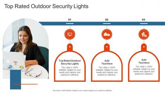 Presenting our innovatively designed set of slides titled Top Rated Outdoor Security Lights In Powerpoint And Google Slides Cpb. This completely editable PowerPoint graphic exhibits Top Rated Outdoor Security Lights that will help you convey the message impactfully. It can be accessed with Google Slides and is available in both standard screen and widescreen aspect ratios. Apart from this, you can download this well structured PowerPoint template design in different formats like PDF, JPG, and PNG. So, click the download button now to gain full access to this PPT design. Our Top Rated Outdoor Security Lights In Powerpoint And Google Slides Cpb are topically designed to provide an attractive backdrop to any subject. Use them to look like a presentation pro.