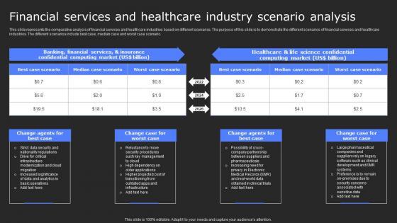 This slide represents the comparative analysis of financial services and healthcare industries based on different scenarios. The purpose of this slide is to demonstrate the different scenarios of financial services and healthcare industries. The different scenarios include best case, median case and worst case scenario. Retrieve professionally designed Financial Services And Healthcare Industry Scenario Secure Computing Framework Clipart Pdf to effectively convey your message and captivate your listeners. Save time by selecting pre-made slideshows that are appropriate for various topics, from business to educational purposes. These themes come in many different styles, from creative to corporate, and all of them are easily adjustable and can be edited quickly. Access them as PowerPoint templates or as Google Slides themes. You do not have to go on a hunt for the perfect presentation because Slidegeeks got you covered from everywhere. This slide represents the comparative analysis of financial services and healthcare industries based on different scenarios. The purpose of this slide is to demonstrate the different scenarios of financial services and healthcare industries. The different scenarios include best case, median case and worst case scenario.