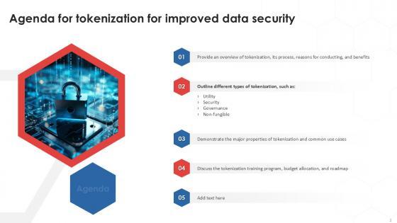 Find a pre-designed and impeccable Agenda For Tokenization For Improved Data Security PPT Powerpoint. The templates can ace your presentation without additional effort. You can download these easy-to-edit presentation templates to make your presentation stand out from others. So, what are you waiting for Download the template from Slidegeeks today and give a unique touch to your presentation. Our Agenda For Tokenization For Improved Data Security PPT Powerpoint are topically designed to provide an attractive backdrop to any subject. Use them to look like a presentation pro.