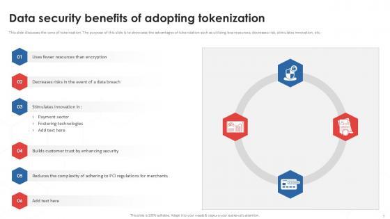 This slide discusses the cons of tokenization. The purpose of this slide is to showcase the advantages of tokenization such as utilizing less resources, decreases risk, stimulates innovation, etc. Find a pre-designed and impeccable Data Security Benefits Of Adopting Tokenization PPT Sample. The templates can ace your presentation without additional effort. You can download these easy-to-edit presentation templates to make your presentation stand out from others. So, what are you waiting for Download the template from Slidegeeks today and give a unique touch to your presentation. This slide discusses the cons of tokenization. The purpose of this slide is to showcase the advantages of tokenization such as utilizing less resources, decreases risk, stimulates innovation, etc.