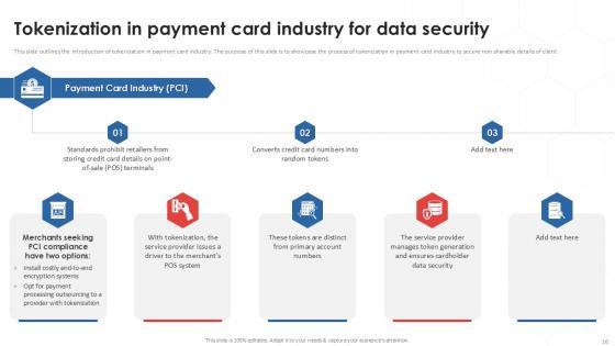 This slide outlines the introduction of tokenization in payment card industry. The purpose of this slide is to showcase the process of tokenization in payment card industry to secure non sharable details of client. Boost your pitch with our creative Tokenization In Payment Card Industry For Data Security PPT Sample. Deliver an awe-inspiring pitch that will mesmerize everyone. Using these presentation templates you will surely catch everyones attention. You can browse the ppts collection on our website. We have researchers who are experts at creating the right content for the templates. So you do not have to invest time in any additional work. Just grab the template now and use them. This slide outlines the introduction of tokenization in payment card industry. The purpose of this slide is to showcase the process of tokenization in payment card industry to secure non sharable details of client.